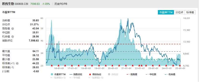 自2021年2月以来,医药板块经历了长达3年多的回调,整体估值处于较低水平,且公募持仓低配。从中证申万医药生物指数来看,目前滚动市盈率仅30.83倍,低于近十年中位数35.51倍的水平,处于历史分位点31.37%。