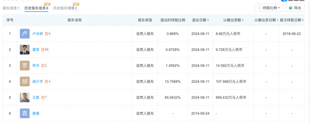 天眼查显示,好大夫在线的主体互动峰科技(北京)有限公司(以下简称:互动峰科技)近日出现股东变动。好大夫在线创始人王航9月11日转让85.94%的股份,持有0.97%股份的雷军亦退出,其他三位股东也退出股东名单;蚂蚁集团全资子公司上海云玚企业管理咨询有限公司持有互动峰科技100%的股份。