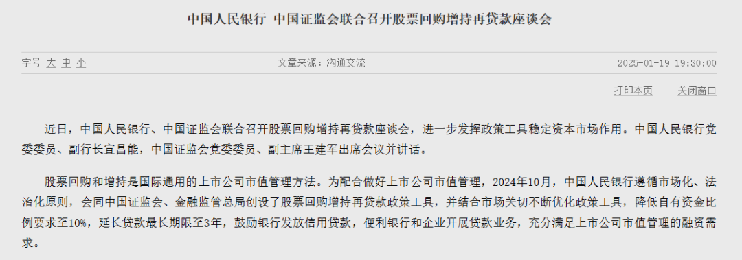 稳定资本市场!央行、证监会联合召开股票回购增持再贷款座谈会