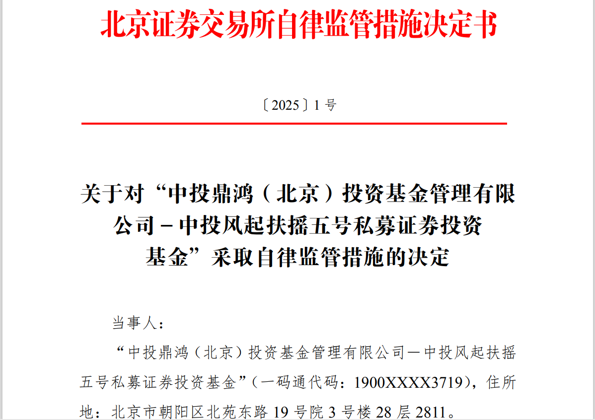 对此,北交所对上述两家私募基金均采取限制证券账户交易的自律监管措施。限制证券账户交易期均为一个月,自2025年3月18日至2025年4月17日。对于上述自律监管措施,北交所表示,将记入诚信档案。