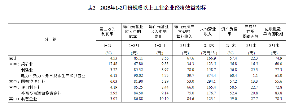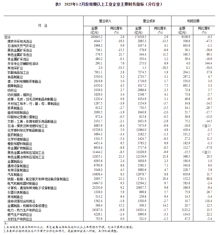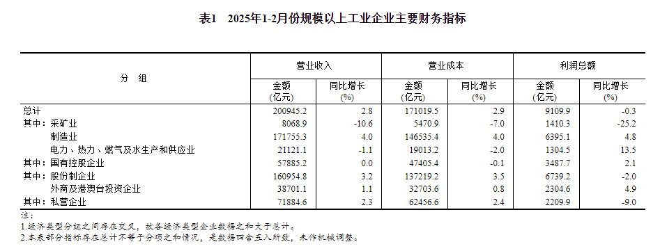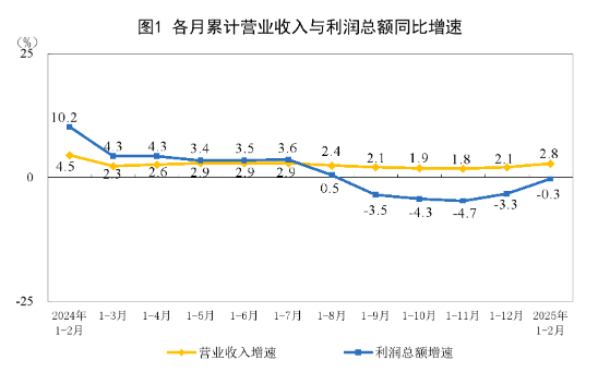 统计局:2025年1—2月份全国规模以上工业企业利润下降0.3%