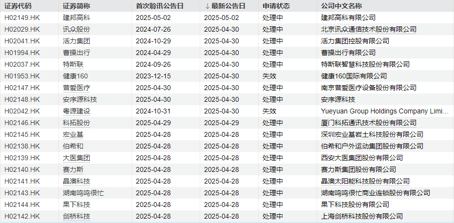 此外,健康160国际有限公司、Yueyuan Group Holdings Company Limited等2家公司的申请失效。