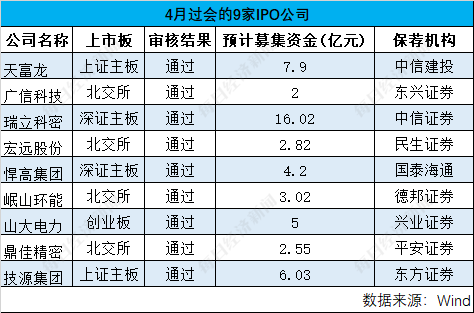 4月份9家IPO公司过会创出自去年12月以来月度新高