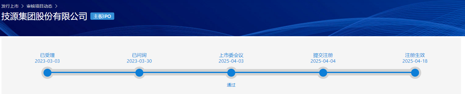 延续此前较快的IPO注册节奏,4月份过会的9家IPO公司也都很快提交了注册,其中拟上市上证主板市场的技源集团和天富龙更是分别在过会后1天和2天即已提交注册,技源集团随后在4月18日已注册生效。