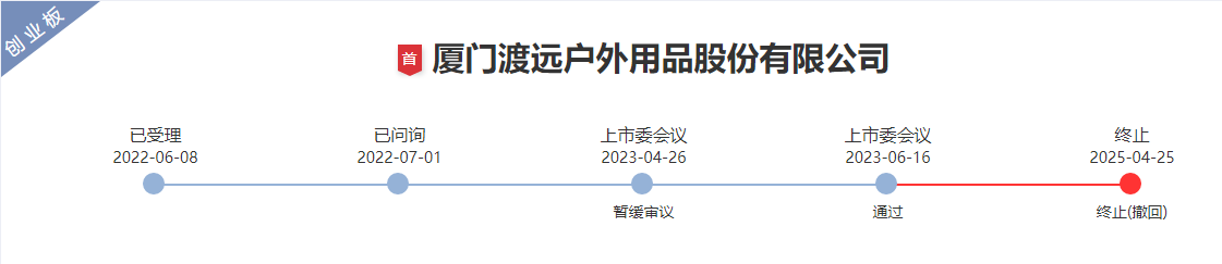 记者注意到,上述5家已终止IPO公司中,除思锐光学外,其余4家均是在2024年之前获得受理的,尤其是渡远户外,其早在2022年即已获得IPO受理。