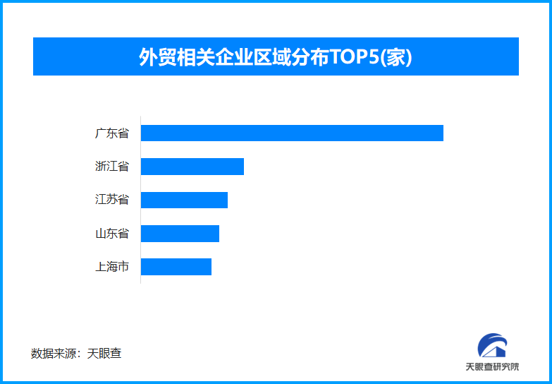 从区域分布来看,广东省以超过245.3万余家外贸相关企业数量位居首位,占全国企业总数的29.7%。排在其后的是浙江省、江苏省、山东省和上海市,分别拥有外贸相关企业数量为超过83.9万余家、70.9万余家、63.6万余家和57.4万余家。