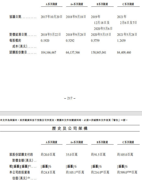 招股书显示,科望医药在完成C轮融资后,估值近6亿美元。
