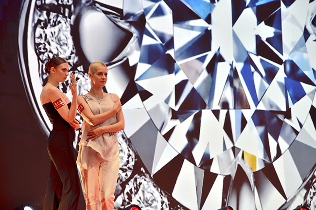 上市之际,周大生在深交所上演“情景风格珠宝”时尚秀。十多位模特以“魅力都会”“恋爱季节”“欢享时光”三幕场景演绎都市女性生活、恋爱结婚、盛大聚会三种情景。