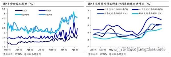 货币政策转向,融资环境趋紧。不论是央行抬高资金成本,还是今年央行MPA考核从严、银监会出台7大文件,核心目标是抑制银行体系的货币超发,尤其是对逃避监管的影子银行体系要严格监管。这就意味着在去杠杆过程中,原先被多创造出来的流动性会逐渐收回来,用来满足信用融资的资金也会变少。
