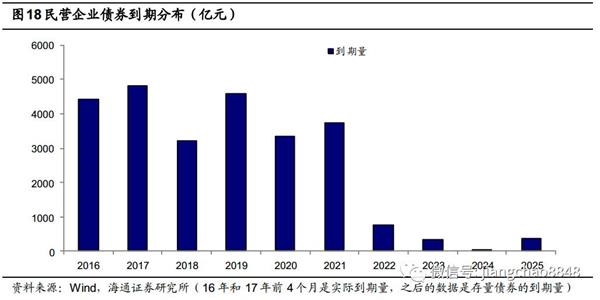 债券到期量高,再融资难度加大。目前民营企业存量债券规模在2万亿左右,存量债券年内到期的约3450亿元,比去年同期的实际到期量还要多350亿;而且2018年-2021年每年还会有3000、4000亿元的到期量。随着前两年货币宽松时发的债券陆续到期,融资趋紧容易引发流动性风险。