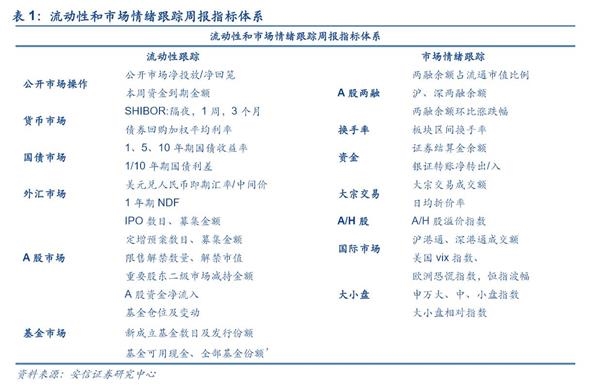 流动性和市场情绪跟踪周报主要对市场流动性以及市场情绪进行数据跟踪和解读。其中,流动性跟踪体系主要包括央行公开市场操作、货币市场、国债市场、外汇市场、A股市场、基金市场等6个方面共20计余项指标构成。市场情绪跟踪体系主要包括A股两融、换手率、资金情况、大宗交易、大小盘A-H等7个方面共计10余项指标构成。希望为各位投资者对当前流动性和市场情绪提供全方位的介绍和解读。
