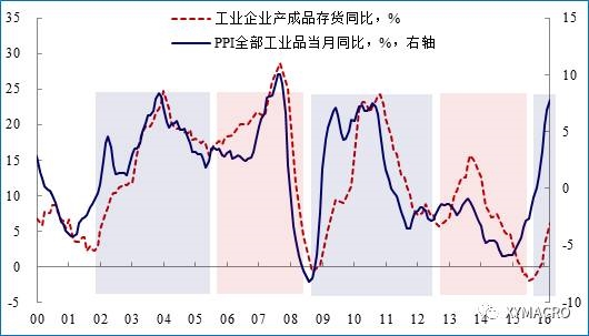 名:库存采用名义值计价,原材料涨价会带来库存的价格重估,这使得中国的产成品库存调整一般滞后于PPI 1-3个月,不过本轮滞后长达6个月(原因请详见下文分析);