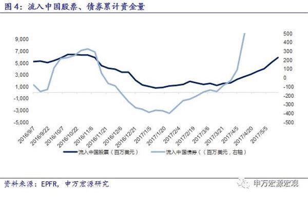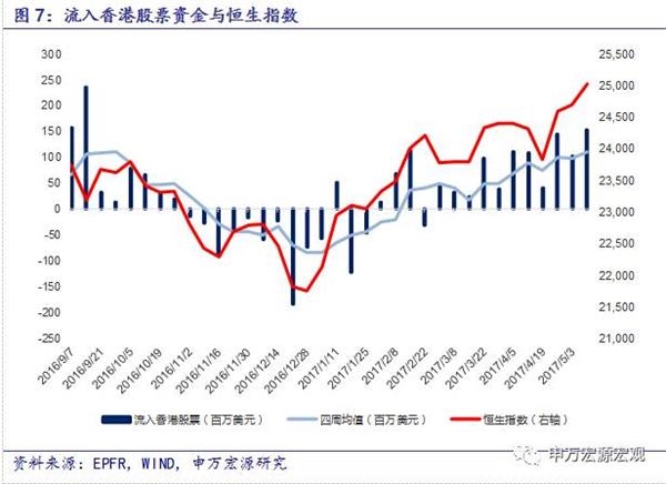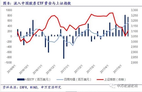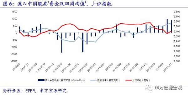 4、正如我们在注释1中说明的一样,EPFR统计的流入中国资产的资金流向,是指在基金产品募集书中明确说明分配于中国市场的投资份额(Fund Allocation),乘以该基金当期已使用的总规模(Fund Flows),考虑到仓位与申赎情况进行折算,得到流入中国资产的资金(Country Flows)。这一计算方法在2014年11月17日沪港通开通前后并没有调整。由于全球资金是否使用沪港通仅仅是渠道方式的变化,与原定的产品投向并无关系,因此我们猜测EPFR的统计数据是包括了沪港通的资金流动,却很难单独剔除出来做分析,建议仍以沪港两地交易所官方数据作为跟踪基准。