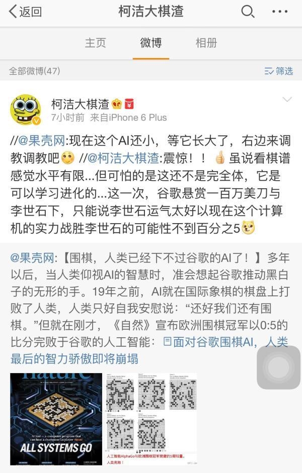 柯洁微博。