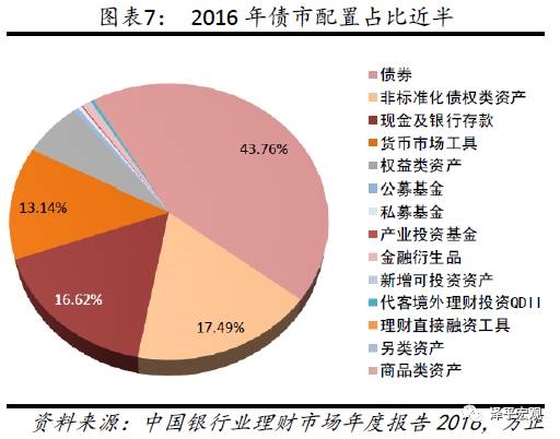 3)银行理财通过资产配置直接或间接地进入实体经济。2016年末,理财资金通过债券、非标、权益类资产等向实体经济投入19.65万亿,占理财资金投资各类资产余额的67.41%,较年初增加3.77万亿元。