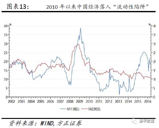 2014年以来资金脱实向虚的根本原因是实体经济回报率下降,2016年下半年以来金融去杠杆并不能从根本上解决资金脱虚向实的问题,如果不能推动供给侧改革提升实体经济回报率,即使金融杠杆去掉,资金也未必回流实体经济,而是可能落入“流动性陷阱”。2002-2009年的典型特点是M1与M2具有很强的相关性,表明资金能够流入实体经济进行信用创造。但是2015年以来M1大幅回升而M2持续下滑,表明超发的货币仅流入资产领域推升泡沫而没有进行信用创造流入实体经济,2010年以来中国已经呈现越来越严重的“流动性陷阱”迹象。