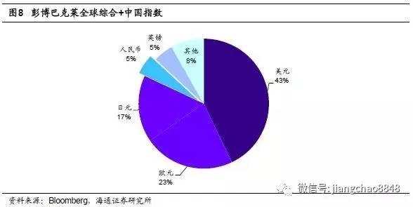 纳入国际债券指数会带来被动配置需求。若中国债券被纳入主流全球债券指数,那些跟踪指数的被动管理基金将有配置中国债券的需求,可给我国债市带来数千亿美元的资金流入。比如在彭博巴克莱“全球综合+中国指数”中,人民币债券的占比有4.9%,目前全球跟踪巴克莱全球综合指数的基金规模估计有3万亿美元,如果人民币债券最终加入全球综合指数,将会给中国债市带来1470亿美元的资金流入。
