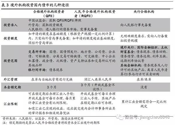 我国银行间债市已经对海外投资者开放。目前境外机构投资国内债券已经有3种途径,分别是通过成为合格境外机构投资者(QFII)、人民币合格境外机构投资者(RQFII)及央行规定的合格机构。