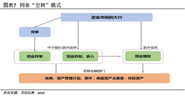 扩表过去式:2015年至2016年,银行的高速扩表映射的是政府部门表外资产的大幅扩张,以及房地产投资高企和过剩产业的债务滚动。我们估算,2015年至今,基建的非标、PPP融资额为5.8万亿,其中游离在现有社融统计之外的约为4万亿。所谓金融“空转”本质是金融机构对次级债务采用了“originate-to-distribute”模式,在多重嵌套中实现风险分担和缓释,而刚性兑付下的监管套利进一步加剧了分层嵌套行为。