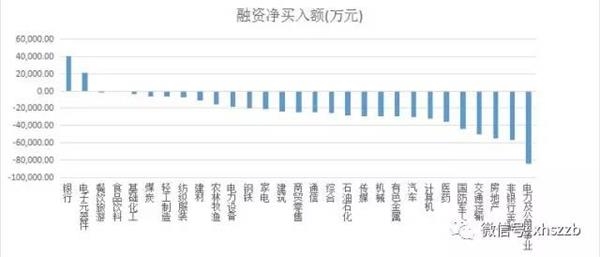 从下图可以看到,除了上述两个行业外,餐饮旅游、食品饮料行业的融资净买入额虽然为负值,但是分别为-859万元和-972万元,相较于电力及公用事业、非银行金融、房地产和交通运输行业低于-5亿元的净买入额相比,可谓是乐观许多。