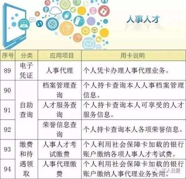 (三)自助查询功能。通过社会保障卡在自助服务一体机或其他服务渠道连接后台系统,方便持卡人查询个人的人力资源和社会保障权益信息及办理相关业务。
