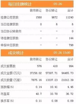 昨日新增挂牌企业6家,截至2017年5月26日,挂牌企业总数达到11240家。