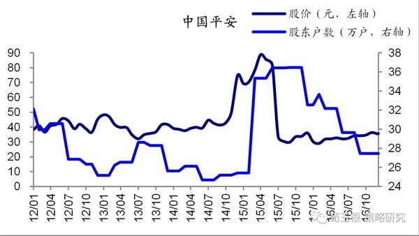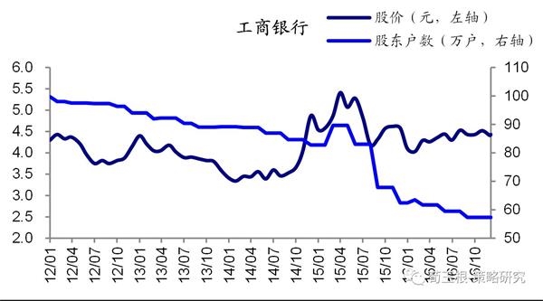 从2012年至今,很多大盘蓝筹股都已经经历过大幅上涨。从股东户数的角度可以观察到一个有趣现象,在大盘股上涨前夕,股东数往往已经大幅降低,筹码相对集中。类似情况在14年下半年、16年都曾出现,展望2017,类似的情形是否会再次上演?