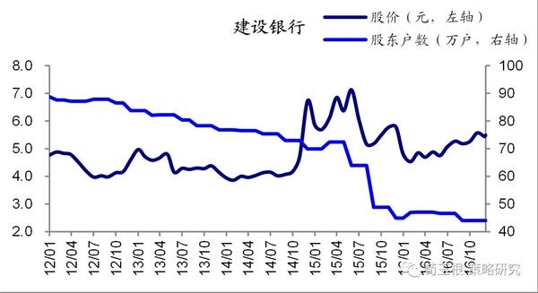 降息引爆金融地产前,龙头股股东数大幅下降。在2014年11月21日,央行意外宣布降息,金融机构一年期贷款基准利率下调0.4个百分点至5.6%。这是央行从2012年7月以来的首次降息,意味着货币政策已经转向宽松。央行降息后,银行、非银、地产等板块大盘蓝筹股快速上涨。在这些大盘股大涨前,同样出现了股东数大幅减少的现象。金融股中,中信证券股东户总数2012年初的从74.6万户降至2014年三季度的56万户;中国平安股东户总数从32万户降至24.7万户;工商银行股东户数从100万户降至87万户,建设银行从89万户降至75万户,其他银行如农业银行、交通银行、光大银行、中信银行等股东户数也有20%-30%幅度的下降。地产板块中万科股东户数也从95万户降至66万户。