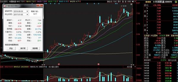 小编现在想的是,要是能拿到现在。。。。。。也能少亏一点。看下面K线图,去年四季度再加今年这几天,中国联通的累计涨幅达到88%。