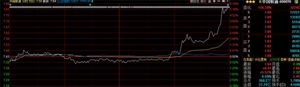 1月5日尾盘,在混改概念轮动的情况下,石化双雄齐拉升,中国联通也大涨近6%。