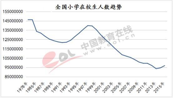 根据中国教育在线发布的2016年基础教育报告数据显示,2015年全国小学在校生人数9692.18万人,比上年增加241.12万人。小学在校生人数自1998年开始持续下降,近几年则明显止跌回升,而2015年招生人数也比上一年显著增加70万人,小学生人数显示人口数量开始反弹,与人口数据吻合,但预计反弹幅度较小。