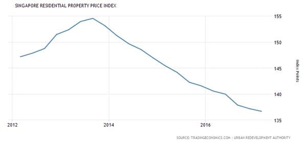 新加坡近5年住宅价格指数(数据来源:tradingeconomics.com)