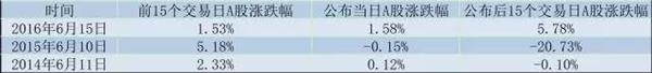 观察历史上这3次公布A股是否纳入MSCI时间点(2014年6月11日、2015年6月10日、2016年6月15日)前后的市场变化,我们发现上证指数在公布日前的15个交易日期间往往上涨相对明显,在公布当日A股却较为淡定,而在公布后市场出现回调。