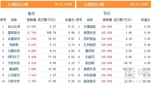 从新三板股票的市场表现来看,今天有10只股票涨幅超过100%,共有63只个股涨幅超过30%。