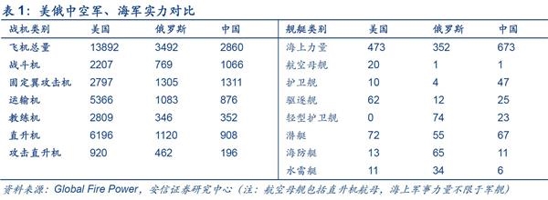 由于我国军工产业起步晚,军事投资占GDP比重不高。中国整体军事实力在数量和质量上仍有较大的差距。在数量上,中国现役三代战机数量和先进舰艇数量与美国有较大的差距,相对于我国辽阔的国土仍然捉襟见肘。在质量上,中国虽然在某些技术领域达到国际先进水平,但是在传统领域如精密工业,材料等领域与发达国家有较大的代差,这是工业积累时间尚短所致,是每个国家都必经的历程。与此同时我国面临多重威胁,风险敞口逐步扩大:东突藏独等恐怖分裂势力蠢蠢欲动,朝鲜核问题迟而不决,美国萨德入韩,南海问题等都是切切实实的威胁,不利于中国经济稳定增长的大局。