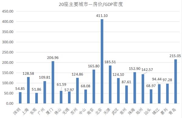 还是原来那20座城市,可是结果却大不一样。在房价/GDP密度这一指标下,真正的高性价比城市开始冒头。