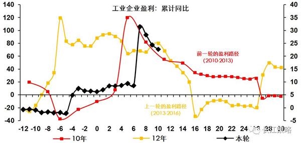 前一轮(10年补库)库存扰动(2010年8月)后一个季度,盈利端的行业比较排序:中游石油化工链>消费制造(必需>可选)>设备制造(工业>消费)>加工冶炼(基本原材料);