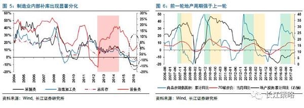 6月公布的所有宏观数据中,对我们而言,最重要的信号是工业产成品库存数据,5月同比增速见顶转弱。这一信号,是本轮补库周期的终结,还是上升通道中的扰动,对于未来盈利的路径意义重大。对于盈利,量、价、毛利率的波动是我们持续跟踪的常规变量,而置身于一轮库存上升周期之中,库存的顶点对盈利节奏有着不可替代的影响。每一轮库存拐点后,需求端将面临周期下行与企业去库的双重冲击,进而致使盈利步入加速下行通道。长江策略于上一轮库存周期顶点也发布了工业企业盈利报告《例外与例外的例外》揭示盈利的下行的风险。