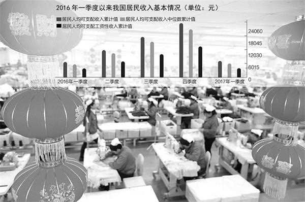 记者梳理发现,2016年全年全国居民人均可支配收入实际同比增长6.3%,低于当年GDP同比6.7%的增速。但在今年一季度,居民收入增速再次跑赢GDP。一季度全国居民收入实际增长7.0%,而当期GDP同比增速为6.9%。