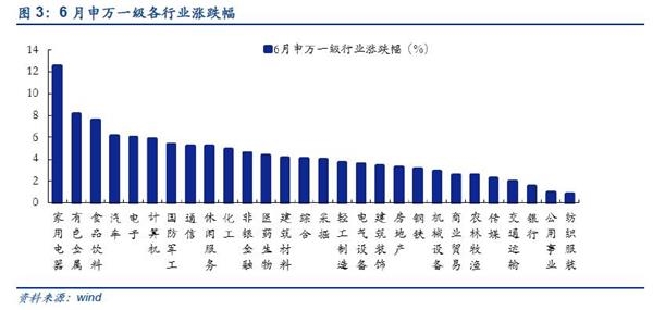 行业方面:6月家用电器领涨,有色金属亮眼。