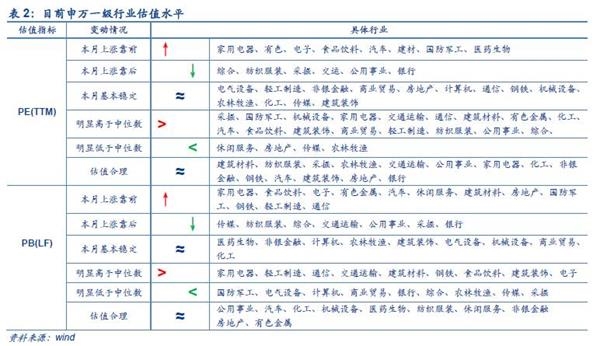 目前申万一级行业PE(TTM)明显高于中位数的行业有采掘业、国防军工,机械设备等;明显低于中位数的行业有农林牧渔、传媒、房地产、电子等。
