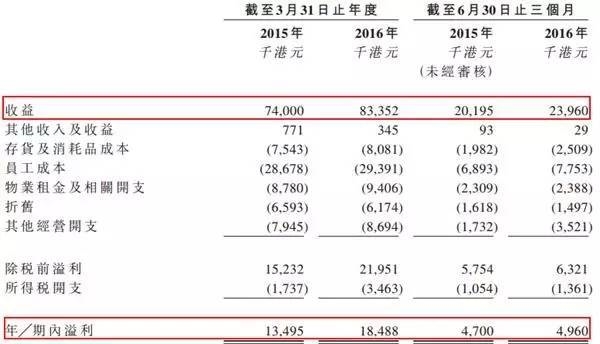 在2015财年,卓珈控股收入7400万港元,在2016财年公司收入8340万港元。而在2015财年和2016财年,卓珈控股的净利润也分别达到了1350万港元和1850万港元。