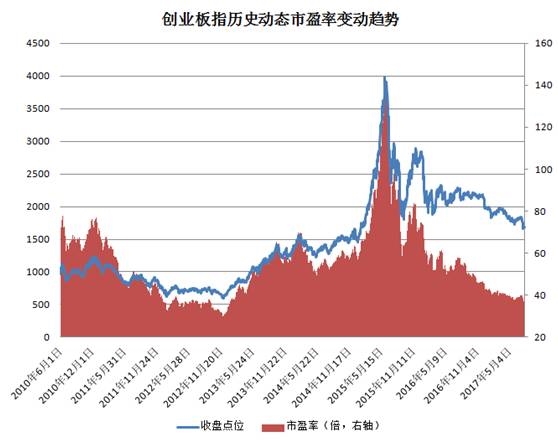 数据显示,创业板指最新的动态市盈率为37.09倍,尽管较历史最低点仍有一小段距离,但是这一数值已经回到2013年年初的水平,当时创业板指点位为700多点。