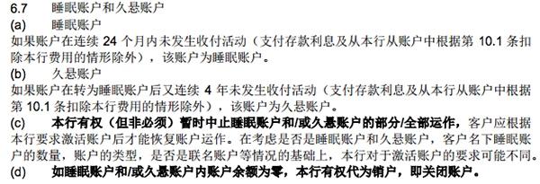值得注意的是,这两份文件关于关闭“睡眠账户”的规定皆与该热线客户主任的说法不符。2013年的这份文件规定却与渣打对张小姐账户的处理非常近似。