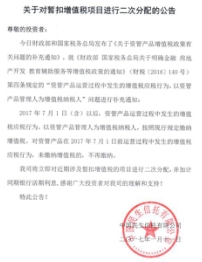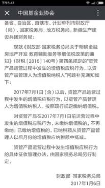 不过,据知情人士透露,相关部门也注意到资管机构的顾虑,在近期召集了多家大型资管机构征求意见后,最终出台了今天这份补充通知。对比140号文,这份通知表示,资管产品运行过程中要交的增值税本来是要追溯至2016年5月1日的,现在不仅不追溯了,还延缓至2017年7月1日。