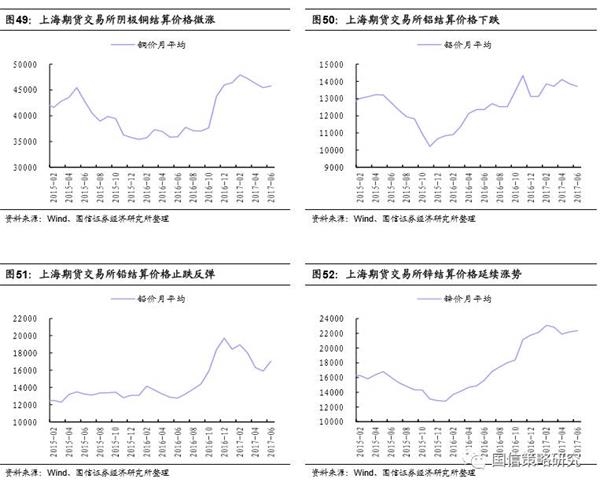 有色金属价格普遍呈现上涨行情。根据上海期货交易所结算价格,阴极铜期货结算价6月环比增长0.8%,高于上月-1.8%的环比增速,铝期货结算价5月环比增长-1.1%,高于上月-1.8%的环比增速。铅期货结算价7月环比增长7.3%,大幅高于上月环比-2.5%的环比增速。锌期货结算价0.7%,低于上月1.4%的环比增速。