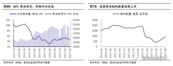 价格走低的同时库存也开始了下行周期。6月WT原油现货均价45.2美元,环比大幅下降7%,创九个月新低。近期石油价格走势羸弱,库存量也随着价格一起呈现下行趋势。钻机数量来看,从2016年年下半年至今一直呈上升趋势,随着全球经济缓慢复苏石油价格有望进一步触底回升。