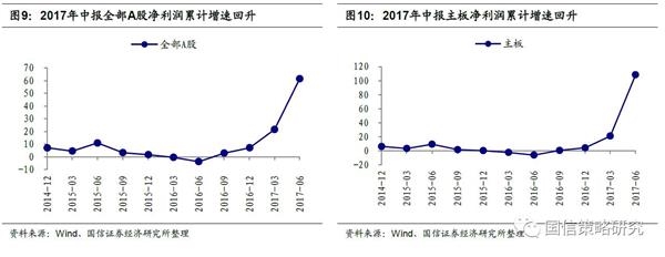 具体分析中,我们对财务数据进行了如下重要处理:(1)按照整体法可比口径进行净利润同比增速计算。可比口径是指计算行业或市场整体利润时要求行业或板块内所有上市公司在当期和上年同期均存在,避免新上市和退市公司的影响。(2)财务数据选择时,已经公布中报数据的采用中报数据,未公布中报已公布业绩快报的采用业绩快报数据,没有中报和业绩快报数据而有业绩预告数据的公司,已业绩预告中净利润上限和下限的均值作为计算依据。(3)由于目前尚有三成以上上市公司未发布2017年中报的相关财务信息,使用已有数据计算的整体结果与最终全部上市公司发布年报后的实际结果多少会有所差异。