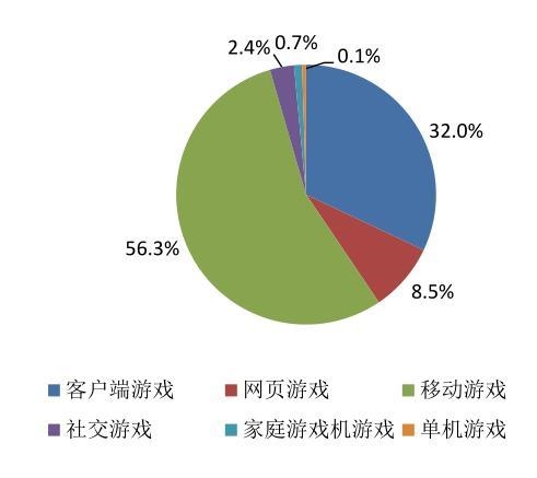 而在游戏市场实际销售收入中,移动游戏占比过半,达到56.3%,在网页游戏和客户端游戏用户开始下滑的同时,移动游戏用户规模仍然保持7.5%的增长,不过增速在持续下滑。