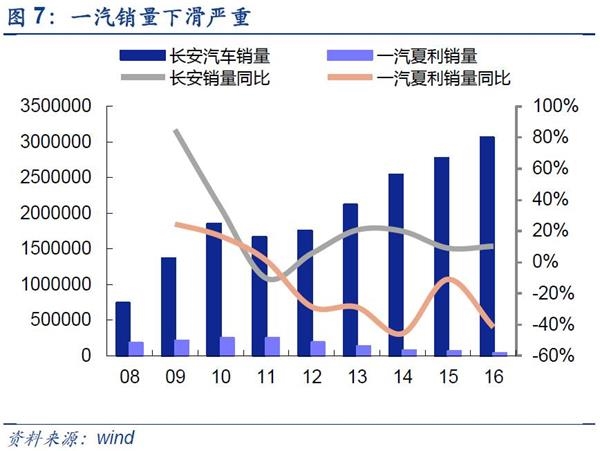 作为一汽作为老牌汽车国企面临诸多难题。集团中一汽夏利发布预亏公告预计今年上半年归属于上市公司股东的净利润将亏损71500万元~66500万元,其去年同期的亏损额为51877万元。亏损的主要原因是产品结构调整尚未完成,现产品的产销规模低,盈利能力较弱。一汽轿车虽然上半年扭亏,其公告预计今年上半年归属于上市公司股东的净利润为27000万-33000万元,但去年同期亏损了82606.35万元。一汽轿车表示,业绩增长的原因是加速新品推出速度,2017年上半年,一汽轿车实现整车销售11.12万辆,同比增长37.83%。一汽夏利与一汽轿同业竞争问题若不能得到实质性解决,一汽集团整体上市无望,其业绩增长也不具备可持续性。